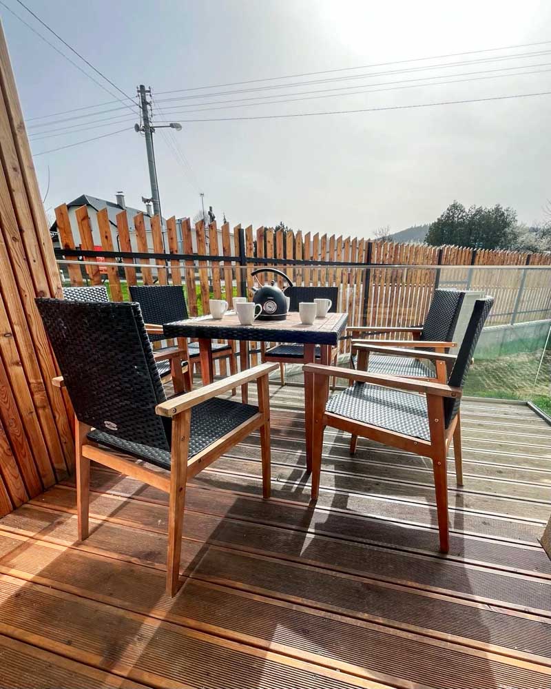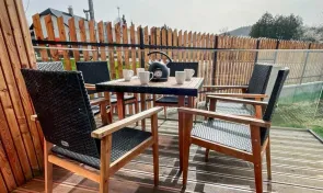 Zahrada je ideálním místem pro odpočinek i společné chvíle – hosté mohou využít soukromé ohniště s grilem, posezení a dětské hřiště. Apartmán je součástí vily, kde je k dispozici i společenská místnost s možností zakoupení drobných pochutin, nápojů, piva či vína.