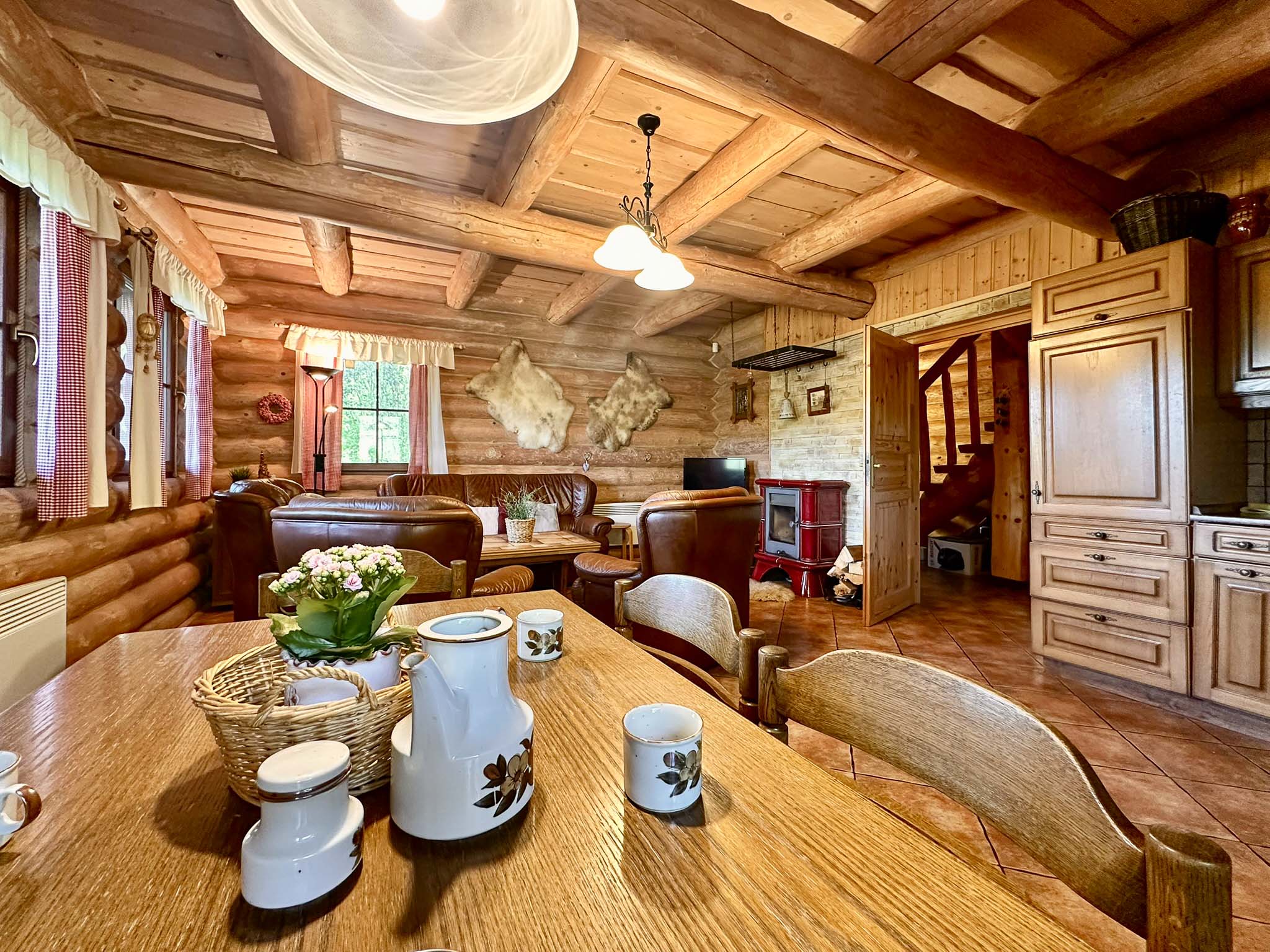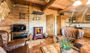 Srub je určen pro 2 až 10 osob a rozprostírá se na dvou podlažích. V přízemí najdete prostorný obývací pokoj s krbovými kamny, pohodlnou sedací soupravou, TV se satelitem, DVD přehrávačem a domácím kinem, dále plně vybavený kuchyňský kout (el. varná deska, horkovzdušná trouba, myčka, lednice s mrazákem, mikrovlnná trouba, nádobí) a jídelní část s rohovou lavicí. Dále je zde koupelna se sprchovým koutem a WC. V patře se nachází dvě čtyřlůžkové a jedna dvoulůžková ložnice a druhé WC s umyvadlem.
