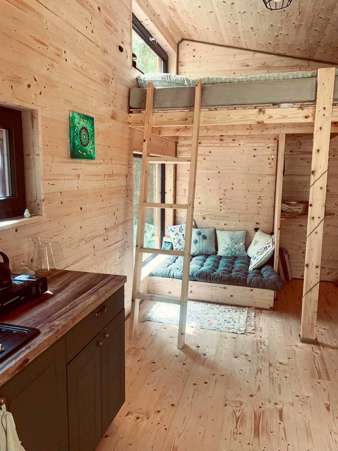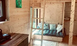 Tajňáczech je útulný tiny house umístěný na louce u lesa s velkými okny směrem do přírody. Ubytování je vhodné až pro čtyři osoby. Spaní zajišťuje matrace na spacím loftu a další lůžka v rámci interiéru, pod loftem se nachází relaxační koutek s posezením. Součástí vybavení jsou dvě židle, stoleček, osvětlení a příjemné detaily, které dotvářejí atmosféru klidného pobytu.