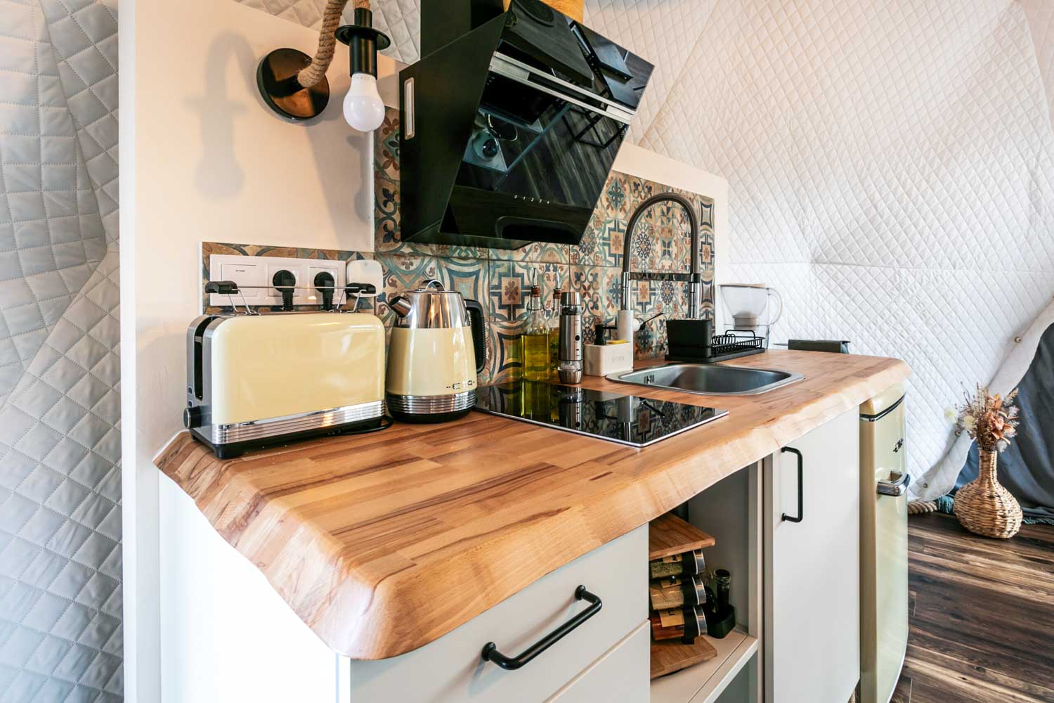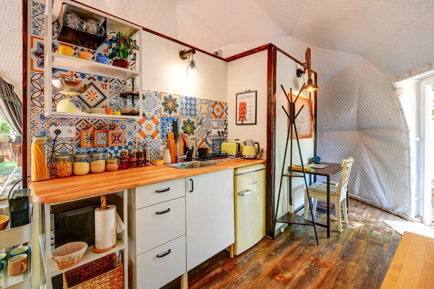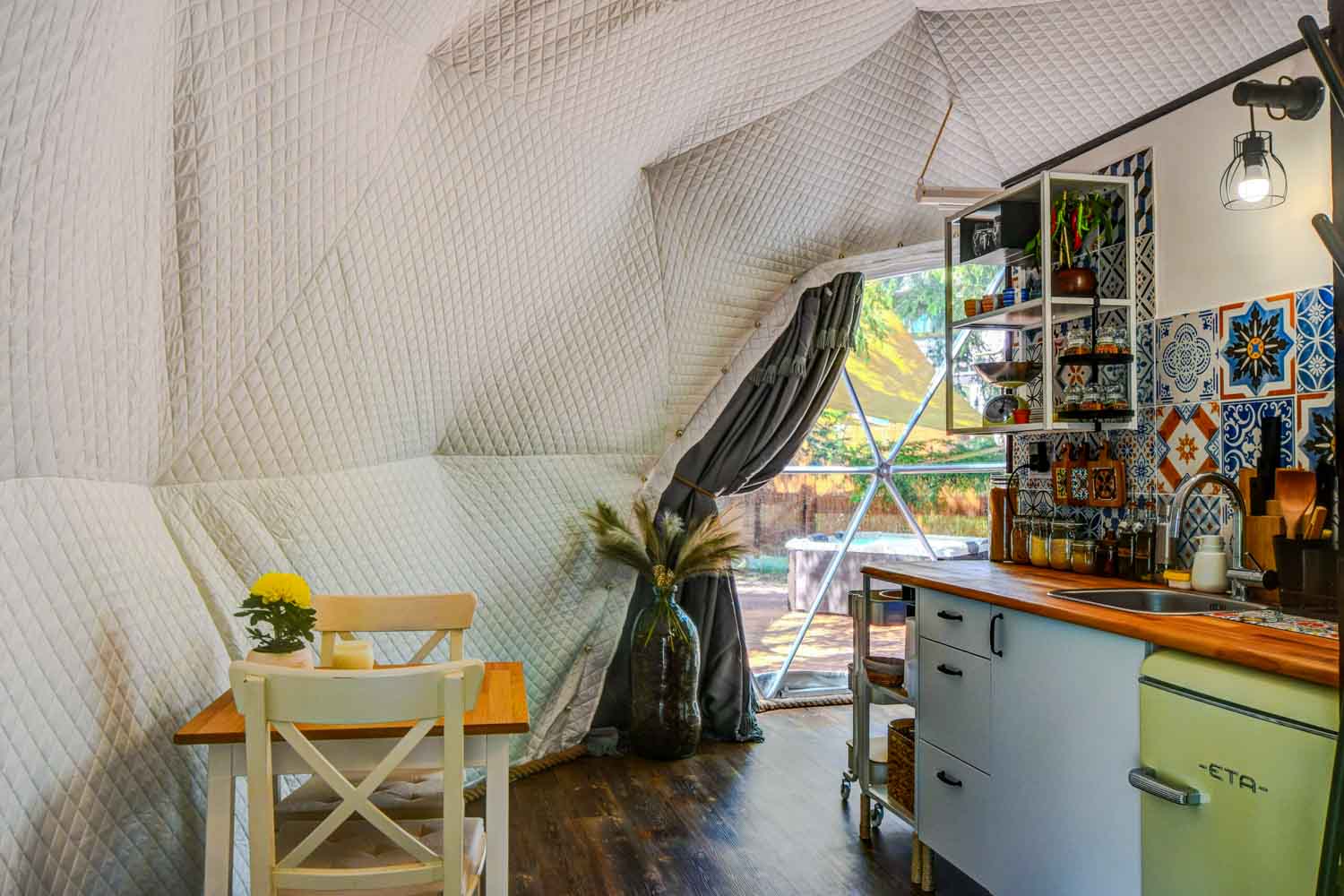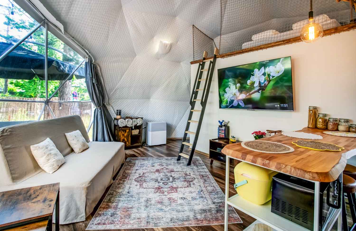 Ubytování tvoří dva samostatné glampingové domy (iglú), které se liší svou kapacitou i dispozičním řešením.