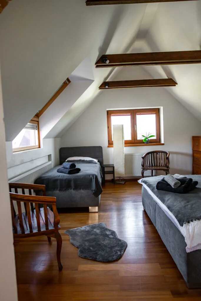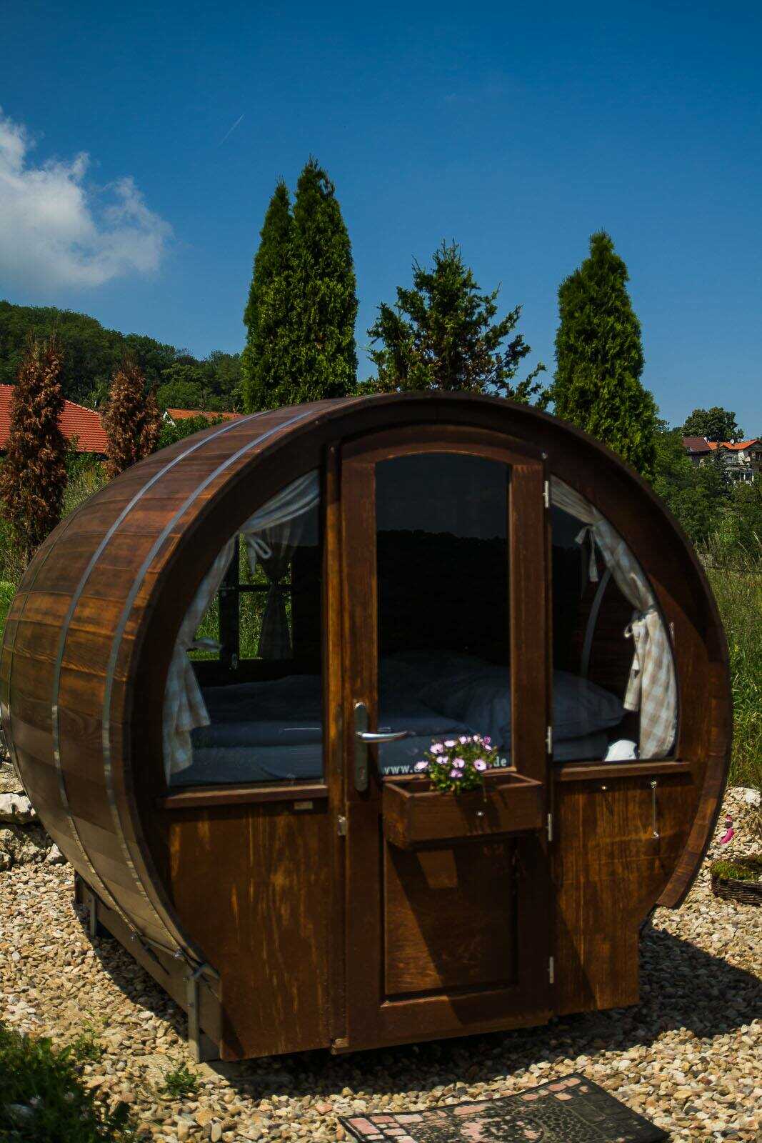Dva dřevěné sudy, které stojí vedle sebe přímo na vinici, nabízí nádherný výhled a nezapomenutelný zážitek. Ubytování v sudu je možné od března do poloviny listopadu. V každém sudu je jedno dvoulůžko. Nechybí osvětlení, zásuvka na 220 V a topení. Před sudy jsou umístěná dřevěná relaxační lehátka a houpací síť, na kterých můžete odpočívat se sklenkou vína v ruce a za jasných večerů pozorovat hvězdnou oblohu. Pokud si budete chtít sami vařit, můžete využít sdílenou kuchyňku pro oba sudu. Je vybavená lednicí, rychlovarnou konvicí, indukční plotýnkou a kuchyňským náčiním a nádobím. K pobytu obdržíte také láhev vína zdarma.