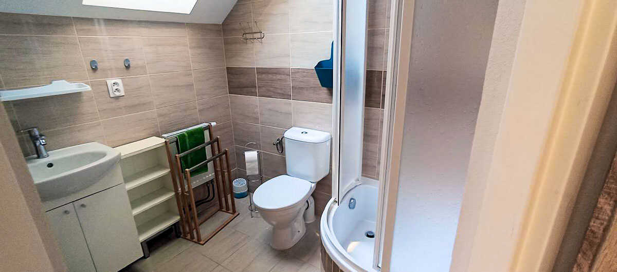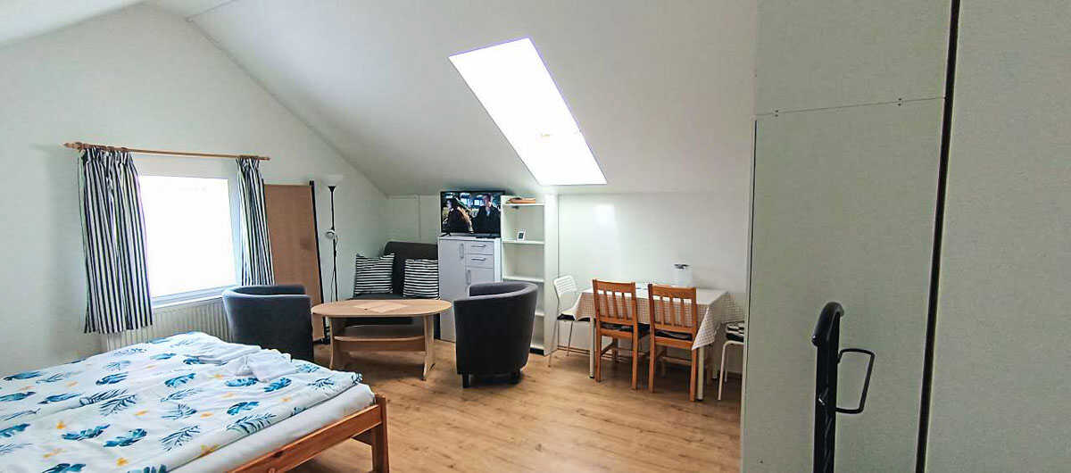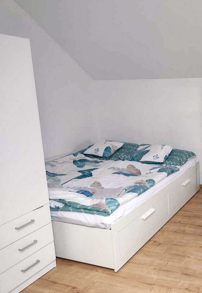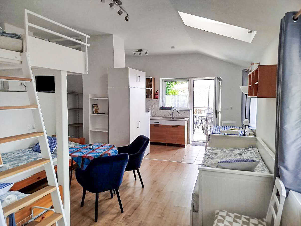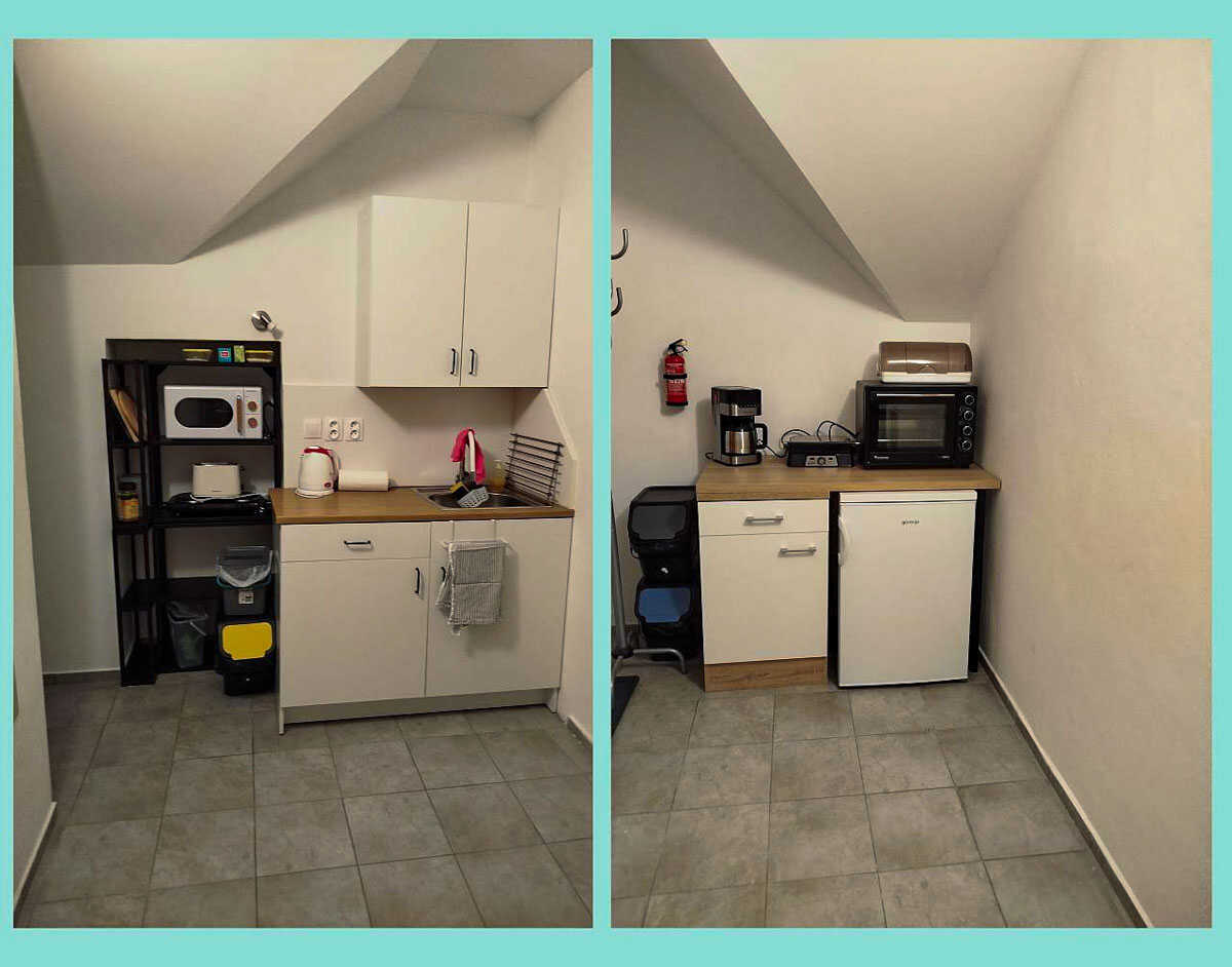 Hosté si mohou vybrat mezi studii s kuchyňkou a terasou nebo prostornými pokoji s chladničkou a pohodlným posezením. Pokoj č. 1 je útulné studio s plně vybavenou kuchyní (elektrický sporák, lednice s mrazákem, kávovar, mikrovlnka, toustovač) a terasou s posezením, kam lze vstoupit i samostatně zvenčí. Pokoj č. 2 nabízí dvě lůžka a rozkládací pohovku s přistýlkou, Pokoj č. 3 disponuje manželskou postelí a pohovkou, zatímco Pokoj č. 4 je podkrovní studio s vlastním kuchyňským koutem, troubou a velkým rozkládacím křeslem – ideální pro rodiny či menší skupiny.