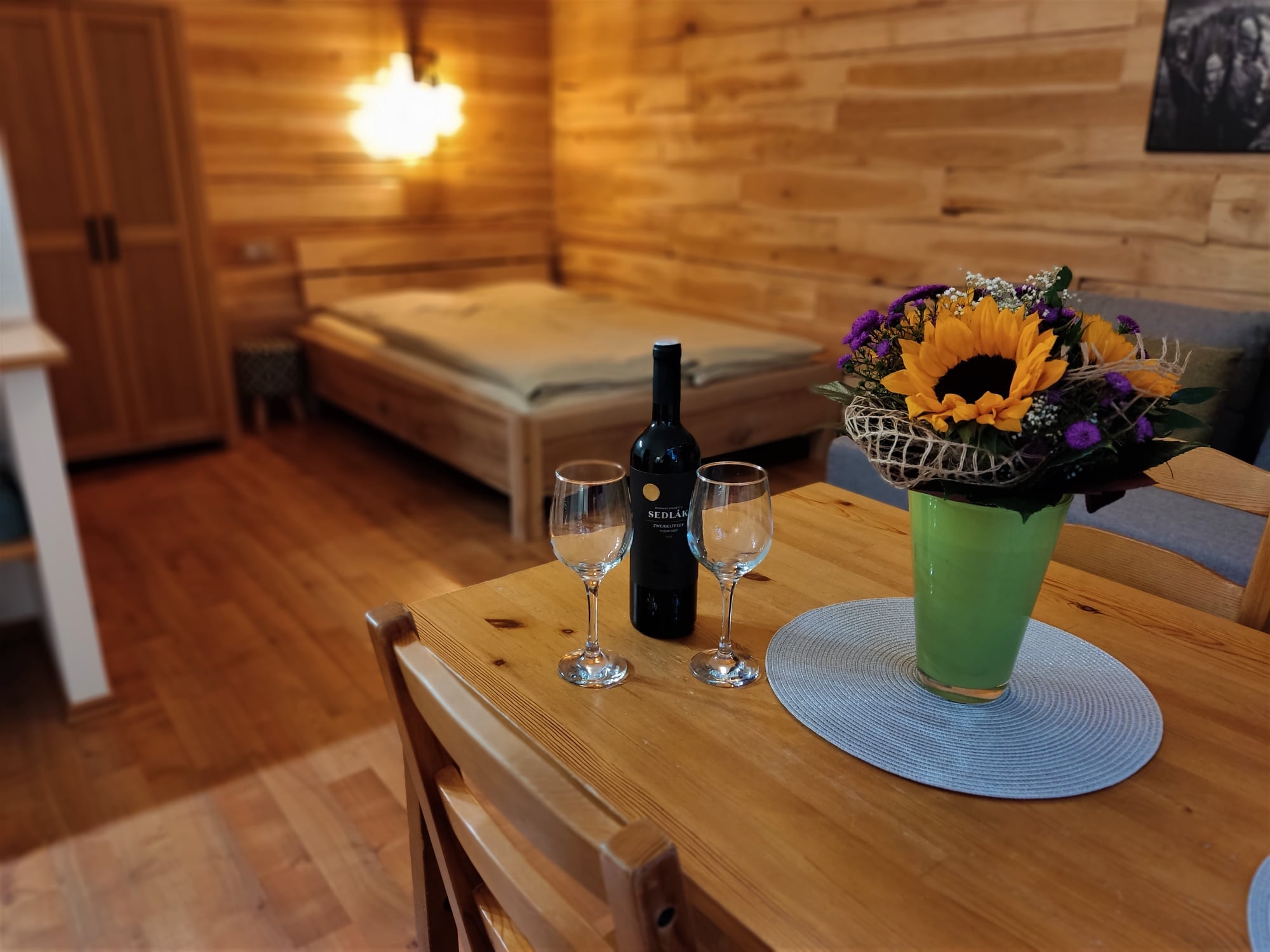 Přijďte strávit dovolenou do Adršpašských skal a užijte si stylové prostředí našeho ubytování, kde se budete cítit jako doma. Nezáleží na tom, jak velká rodina jste, na výběr máte ze dvou, tří, čtyř nebo pětilůžkových apartmánů. Oceníte vkusně zařízené interiéry a vybavení. Každý apartmán je zařízen televizí s kabelovým příjmem, wifi internetem, koupelenou se sprchou a wc a kuchyňským koutem, který má má vše, co potřebujete k vaření i úschově vašich surovin (lednice, sklokeramická deska, rychlovarná konvice, mikrovlnná trouba, dřez a veškré kuchyňské náčiní a nádobí). Děti budou nadšené z našeho dětského koutku s hračkami a z venkovního hřiště s pískovištěm, skluzavkou a houpačkou. Když budete potřebovat, rádi vám zapůjčíme dětskou postýlku, židličku, vaničku nebo nočník. K příjemnému posezení můžete využívat rozlehlou udržovanou zahradu se zahradním nábytkem a grilem. Ze zahrady je překrásný výhled na okolní louky a nedaleký Křížový vrch, kam se určitě vydejte i na výlet. Večer si můžete zpříjemnit širokou nabídkou vín z rodinného vinařství Sedlák, kterou máme připravenou ve vinotéce. Své auto můžete parkovat přímo u penzionu. Kola a kočárky si můžete uschovat v prostorech, které jsme pro tyto účely vyčlenili. Horské kolo a in line brusle si můžete vypůjčit z naší půjčovny. V celém penzionu vám bude k dispozici WIFI internet. Penzion je nekuřácký.