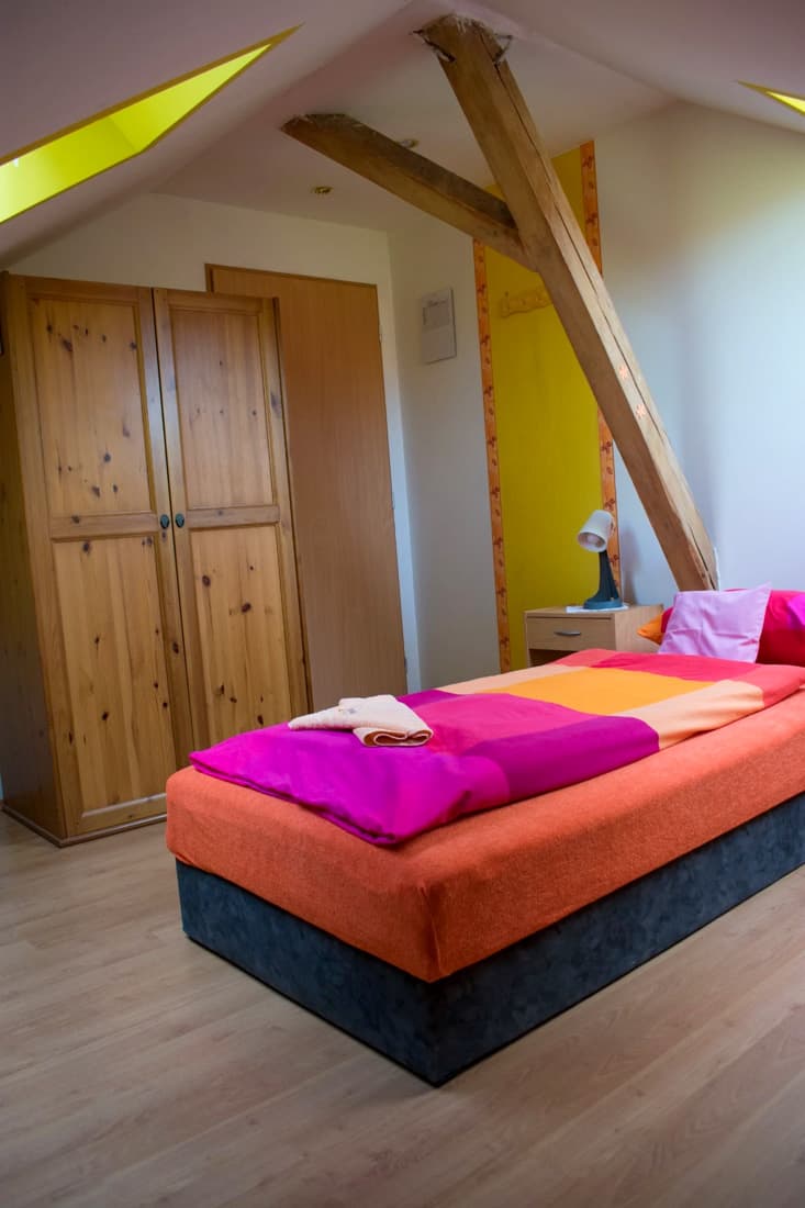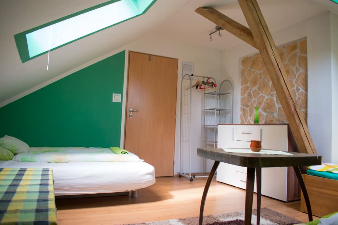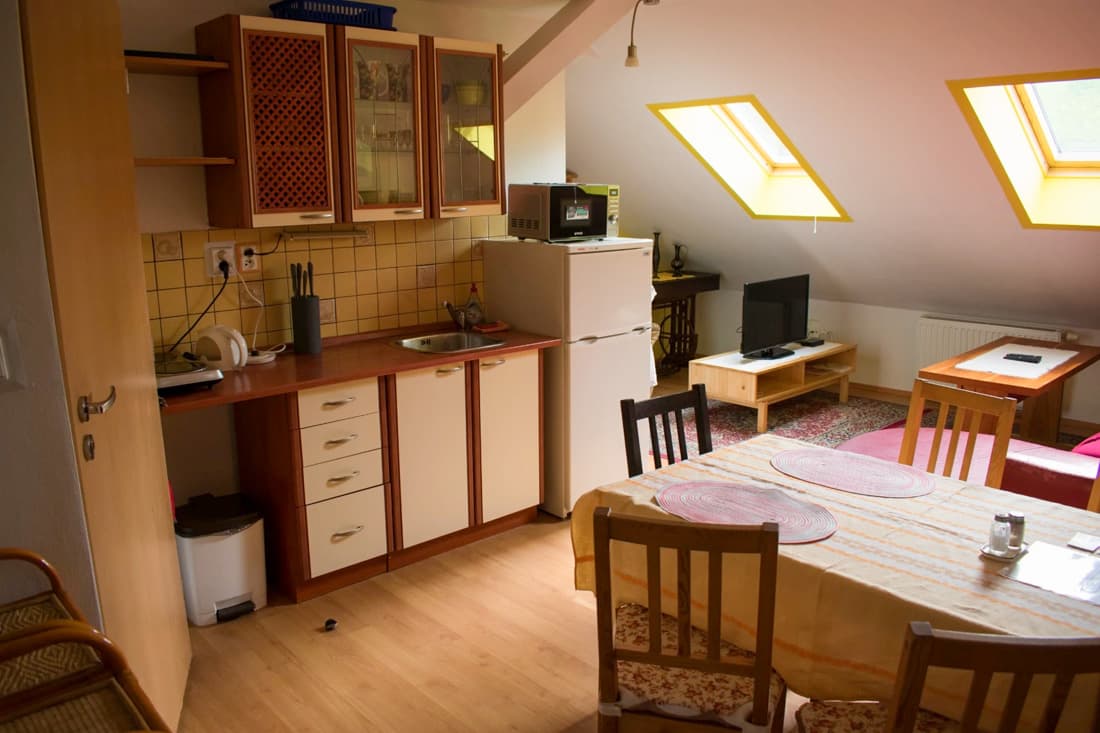 V hlavní budově jsou k dispozici pokoje se sdíleným zázemím i samostatné apartmány s vlastní koupelnou a kuchyňským koutem. Podkrovní pokoje nabízejí útulné prostředí a společné zázemí pro pohodlný pobyt. Samozřejmostí je bezplatné WiFi připojení v celém objektu.
