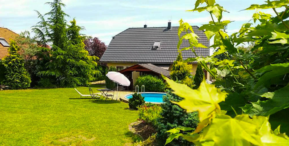 Společné zázemí vily je orientováno na odpočinek a trávení času venku. Hostům je k dispozici upravená zahrada, která slouží jako přirozené centrum celého objektu. V letní sezóně mohou hosté zdarma využívat venkovní bazén. Za poplatek a s nutností rezervace alespoň 24 hodin předem je možné využít soukromou vířivku. Součástí venkovního areálu je zastřešená terasa s květinovou výzdobou, zahradní krb a zázemí pro grilování. Udržované trávníky a klidné zákoutí zahrady jsou vhodné také pro piknik nebo odpočinek na čerstvém vzduchu.