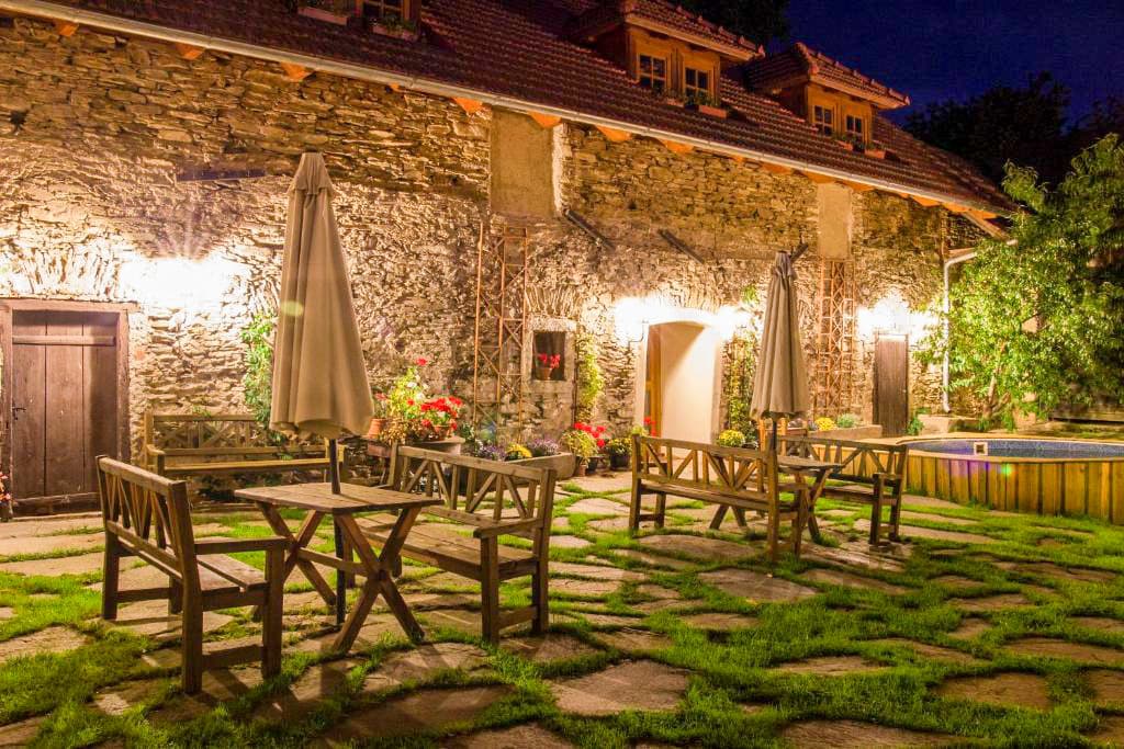 Součástí areálu je uzavřený dvůr a zahrada s venkovním posezením, kde si hosté mohou užít klidné chvíle na čerstvém vzduchu nebo grilování. Pro děti je připraven přírodní dětský koutek v přilehlém sadu. Po dni stráveném na výletech je možné dopřát si relaxaci v sauně. Ubytování nabízí finskou, bylinnou a solnou saunu.
