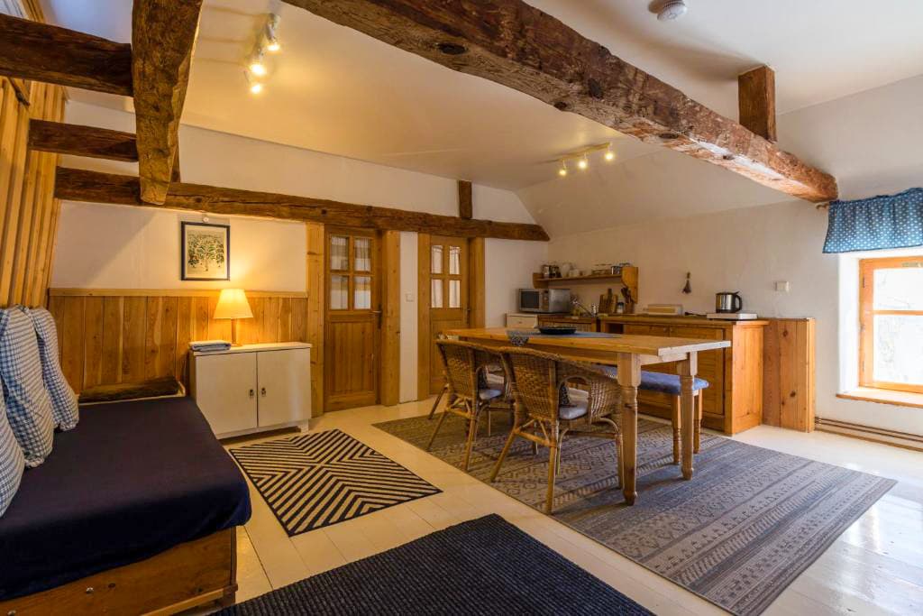 Hosté se mohou ubytovat v několika typech pokojů – k dispozici jsou apartmány, studia s kuchyňkou i útulné pokoje. Apartmány a studia mají vlastní kuchyňský kout a samostatný vchod ze dvora, pokoje jsou vybaveny vlastním sociálním zařízením a pohodlným nábytkem. V celém objektu je samozřejmostí bezplatné Wi-Fi připojení a parkování přímo u penzionu.