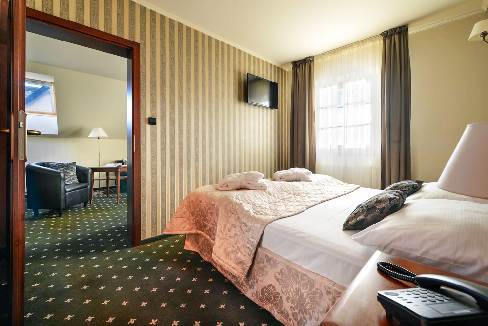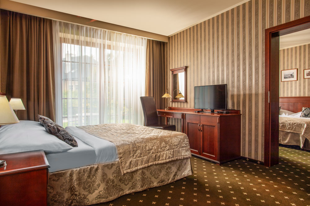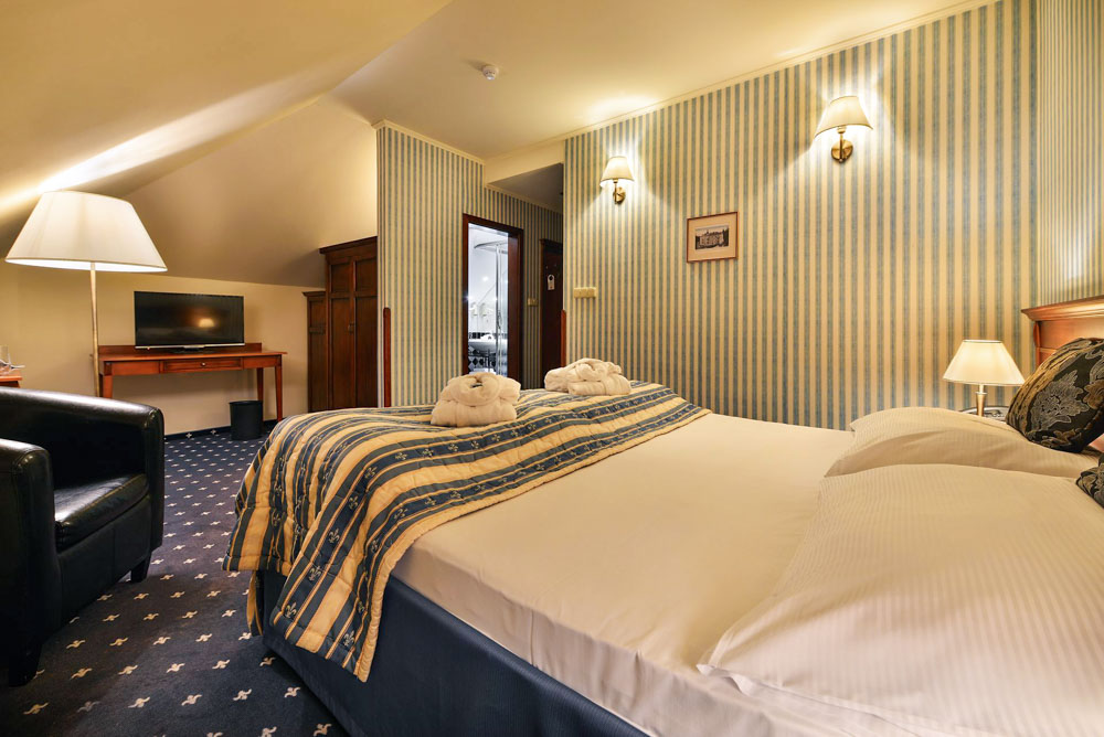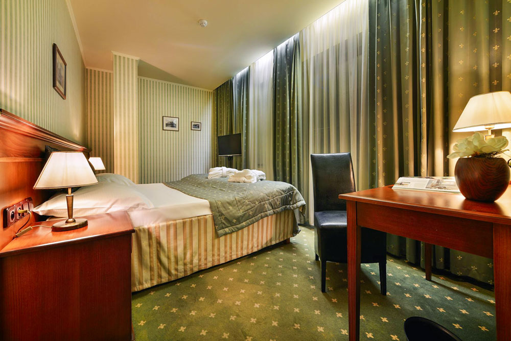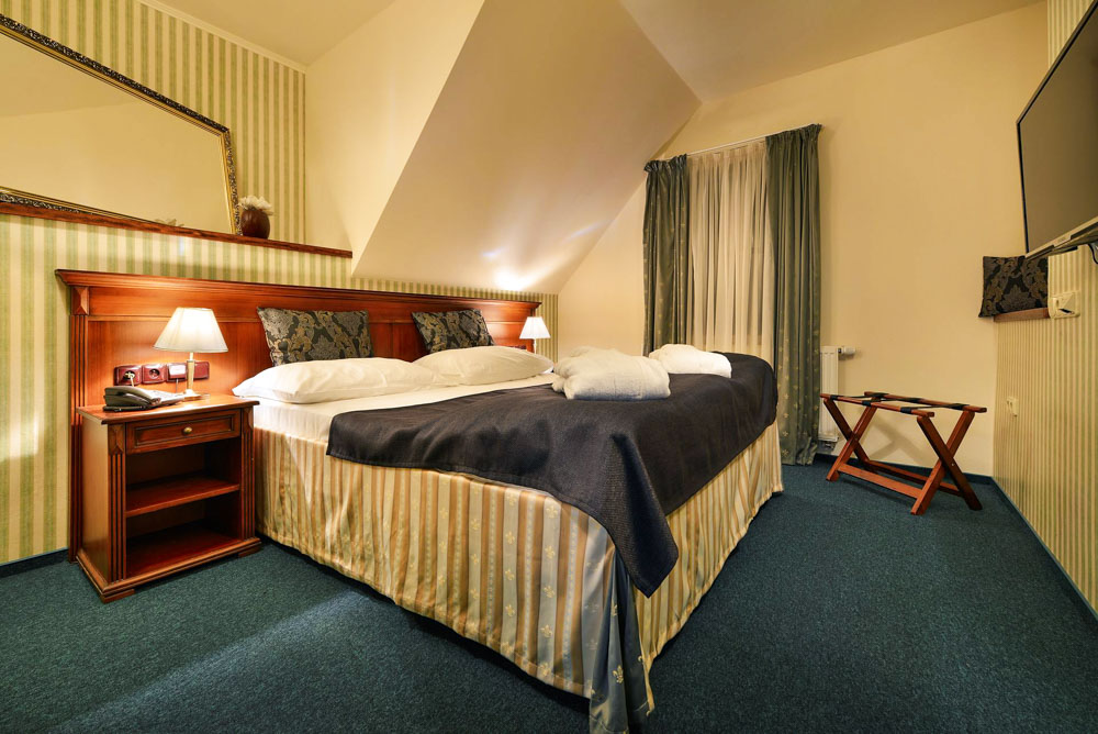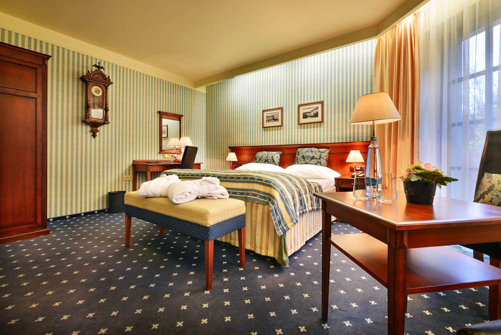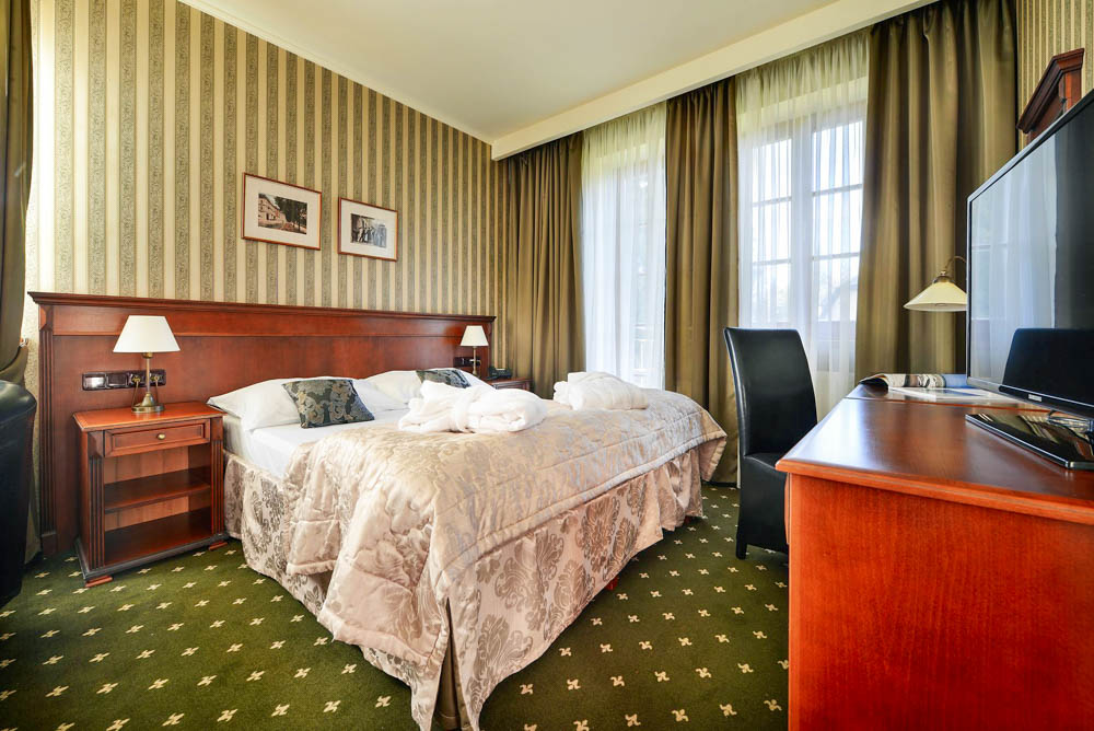 Hotel nabízí širokou škálu ubytovacích možností, které vyhoví jak jednotlivcům na pracovní cestě, tak párům či rodinám s dětmi. K dispozici jsou dvoulůžkové pokoje kategorie Comfort a Deluxe, které jsou vybaveny manželskou postelí, pracovním stolem se židlí a satelitní televizí s plochou obrazovkou. Pokoje Deluxe mají navíc vlastní balkon, ideální pro odpočinek s výhledem do hotelového parku.