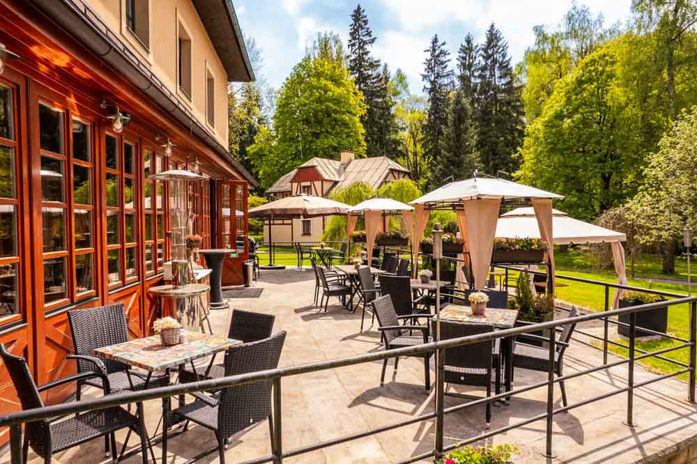 Okolí je rájem pro aktivní odpočinek. Kromě sousedního golfového hřiště se můžete vydat do Slavkovského lesa na pěší túry nebo cyklovýlety k pramenům (např. Farská kyselka). Jen 4 km od hotelu leží centrum Mariánských Lázní s kolonádami, parky a kavárnami. V zimě pak oceníte blízkost lyžařského areálu Mariánky.