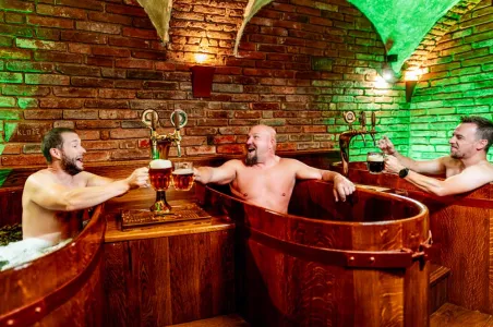 V centru Plzně na náměstí Republiky, naproti katedrále sv. Bartoloměje, si dopřejete soukromé pivní lázně v domě U Zlatého beránka. Čeká vás 100% přírodní koupel z pivních extraktů a bylin ve vířivých tisícilitrových dubových kádích, neomezené čepování světlého i tmavého piva a následný relax na bio slámě u rozpálených kachlových kamen. celý popis