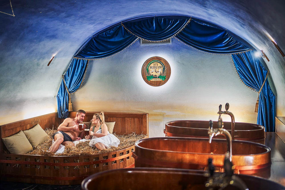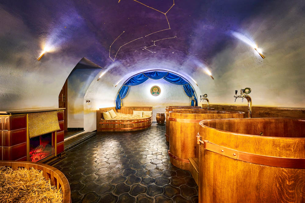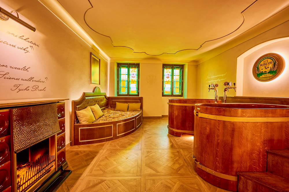 Chateaux Spa Beerland® Praha nabízí unikátní pivní lázeň v autentických sklepních prostorách, kde kdysi pobýval slavný alchymista a astrolog Tycho Brahe. Celý zážitek se odehrává v soukromí vámi vybrané lázeňské místnosti – Alchemyst, Astrologist nebo Castle – a je navržen tak, abyste si jej užili nerušeně a naplno. Koupel probíhá v ručně vyráběných tisícilitrových dubových kádích z Dubu Královského a je tvořena čistě přírodní směsí chmele, sladu, pivovarských kvasnic a bylinných extraktů používaných při výrobě českého piva Krušovice®.