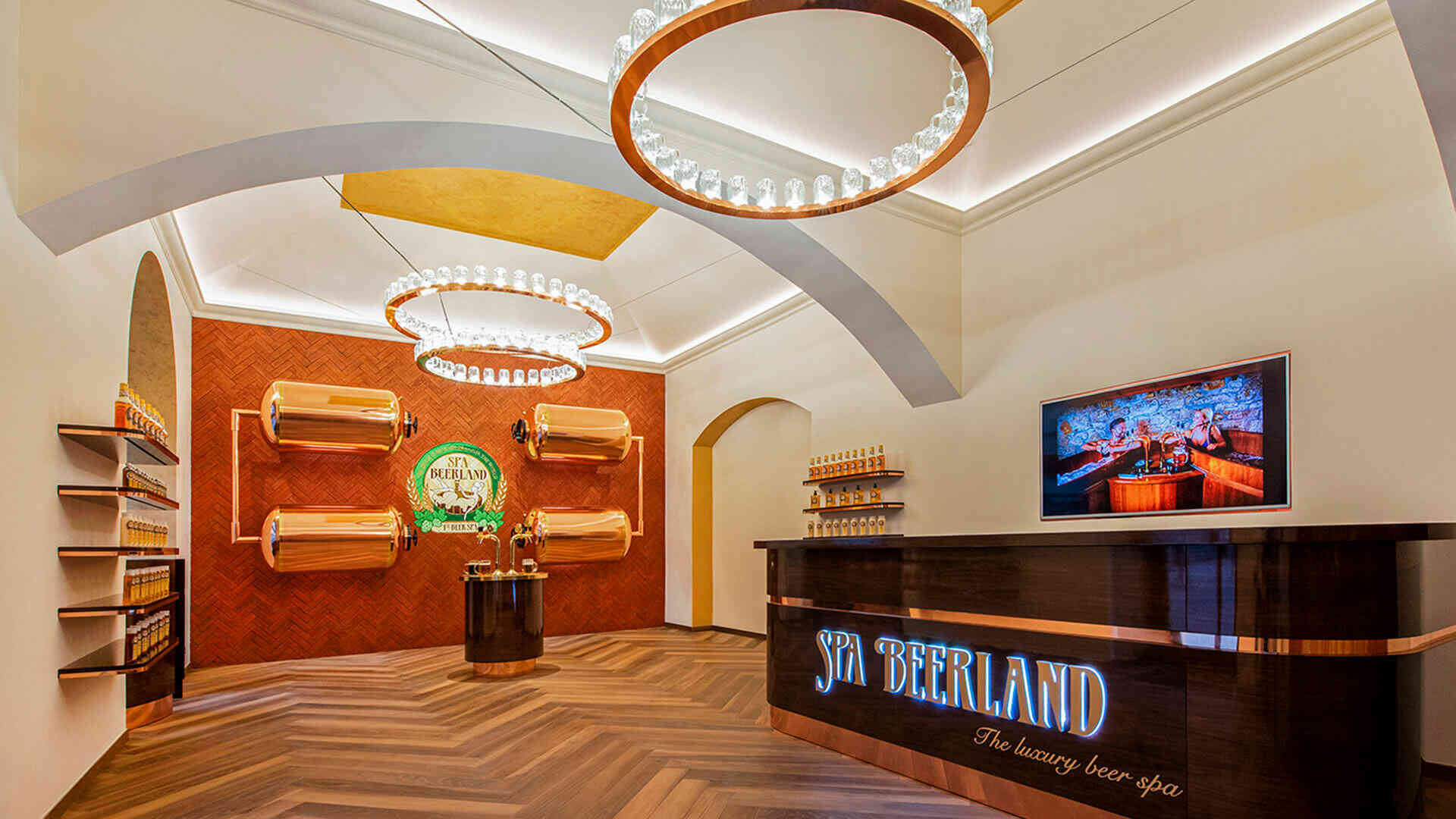 Unikátní koncept představuje fůzi moderního pojetí lázní a starých léčitelských přístupů. Luxusní interiér z ořechového a dubového dřeva ve vysokém lesku, v kombinaci s doplňky z ušlechtilých kovů, dělá Spa Beerland Praha naprosto jedinečným.