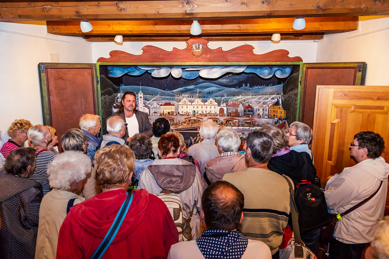 Poznejte malebné městečko Kašperské hory za poutavého vyprávění průvodce. V turistické sezoně, od června do září, se pořadají pravidelné a velmi zajímavé prohlídky města s průvodcem. Prohlídka je určena jak pro individuální návštěvníky, tak i pro skupiny. Během přibližně 75 minutové prohlídky poznáte zdejší památky: barokní budovu radnice s největším skříňovým betlémem v Čechách, radniční podzemí, kostel sv. Markéty a představíme vám zajímavé stavby historického náměstí. Prohlídky jsou pořádané Městkým kulturním a informačním střediskem Kašperských hor.